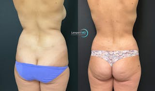 This 32 year old female patient had a bilateral breast implant removal with total capsulectomy (explant) and mastopexy (breast lift). I also performed liposuction of the abdomen and posterior flanks (love handles) to fat graft the breasts. Here she is 3 months post op.