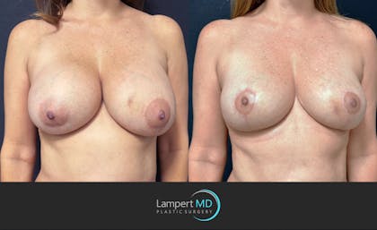 EXPLANT & BREAST LIFT: 5 months post op after total intact "en bloc" capsulectomy and breast extended lift using mammary imbrication lift and fixation technique with reduction and bilateral nipple reduction.